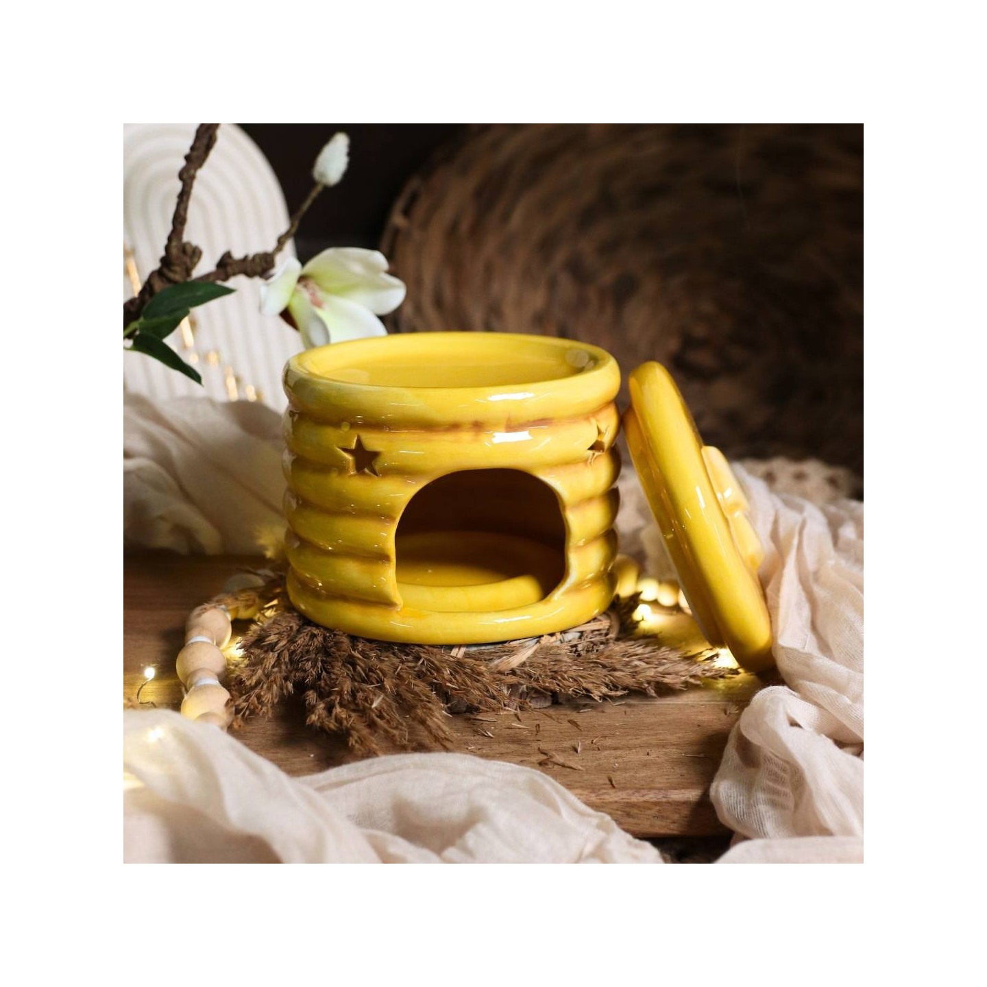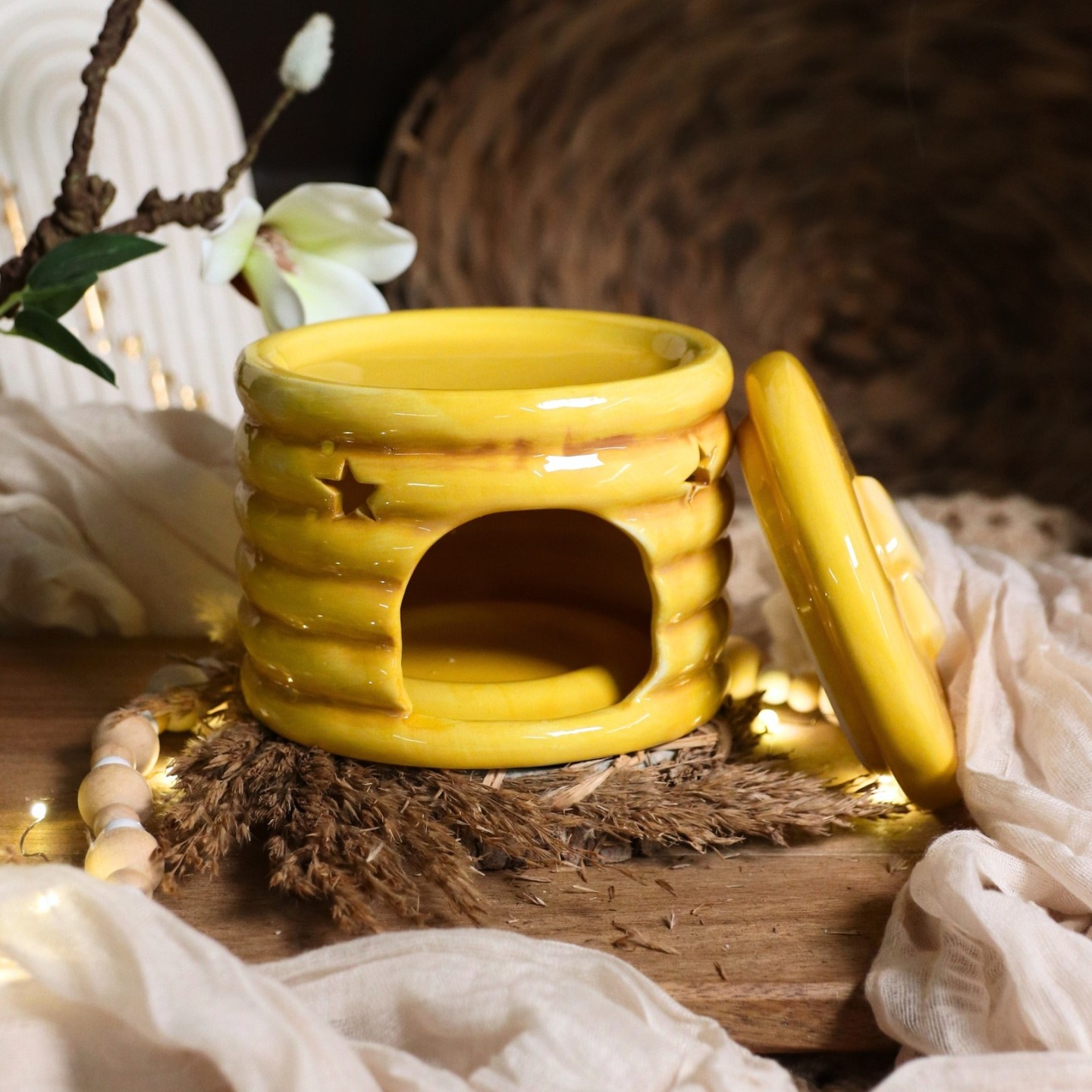 Un superbe bruleur en céramique pour faire fondre délicatement nos fondants de cire parfumée et offrir à votre intérieur une sublime odeur.