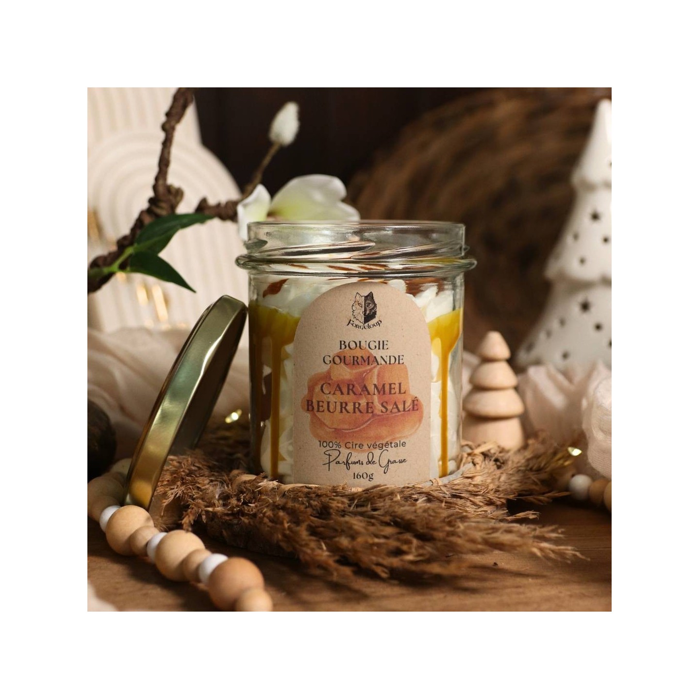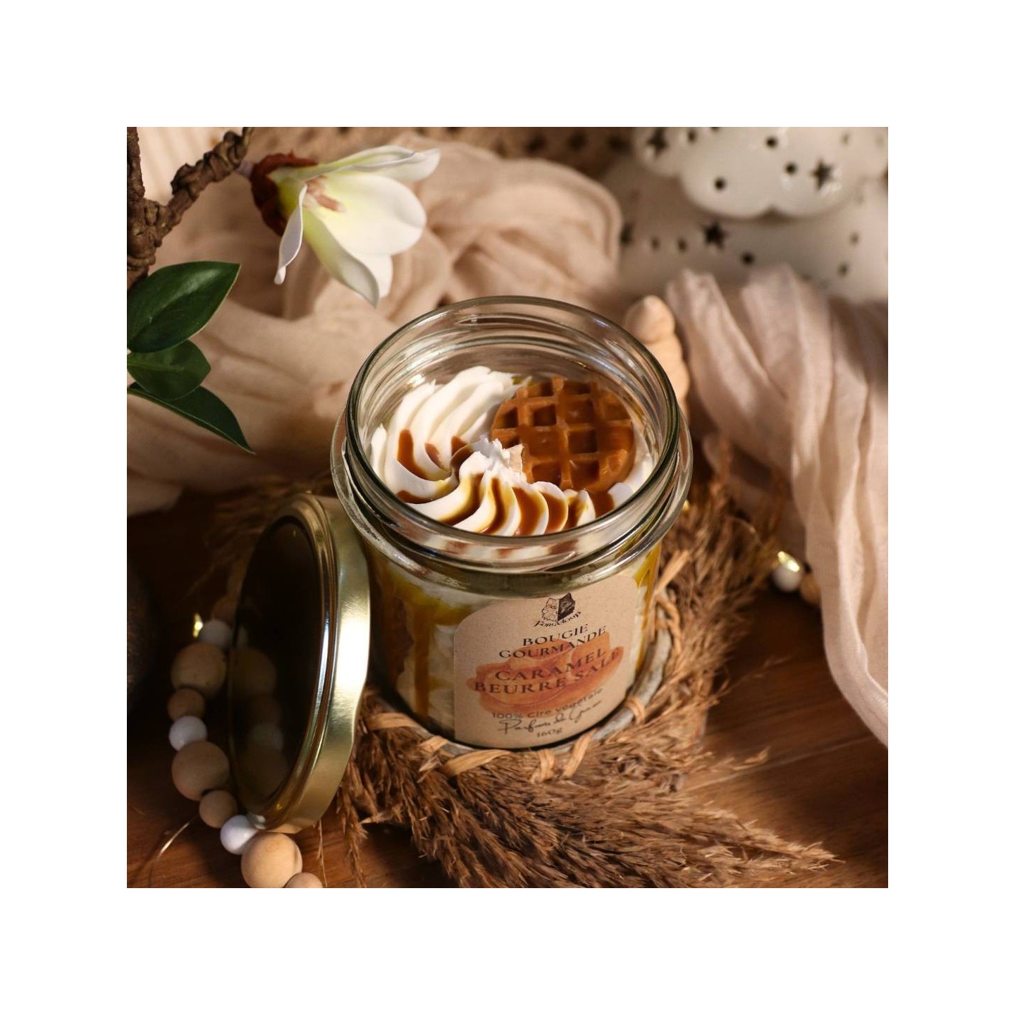 Une magnifique bougie gourmande au parfum Caramel Beurre Salé ! Un vrai délice à sentir ! Avec son aspect glace caramel, attention à ne pas planter la cuillère dans le pot !