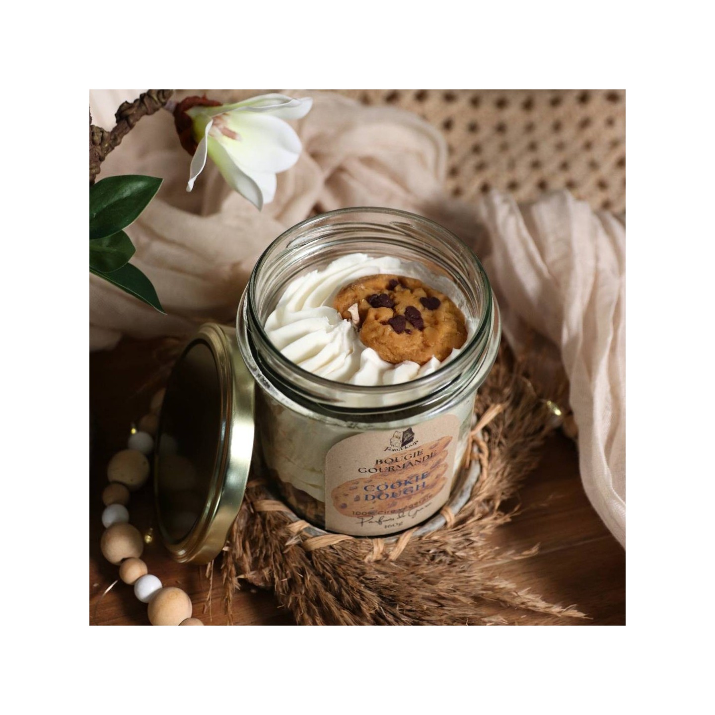 Une superbe bougie au parfum Cookie Dough ! Inspiré part les dessert Cookie Dough, pâte à cookie crue, son odeur gourmande et beurré ravira les gourmands ! Attention on ne plonge pas la cuillère dedans !